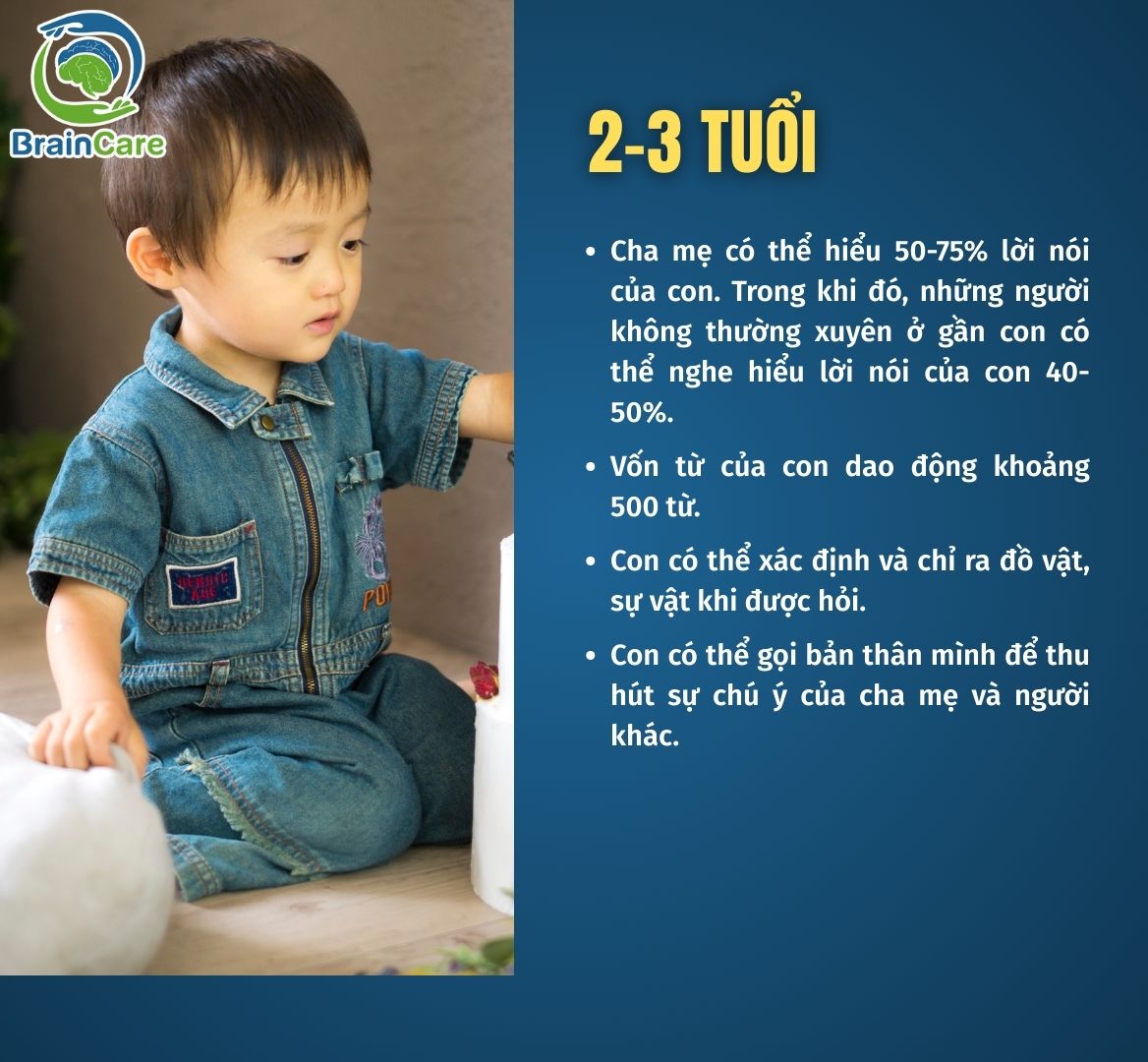 2-3 tuổi: Người thường xuyên tiếp xúc với con (điển hình là cha mẹ) có thể hiểu được 50-70% lời nói của con.