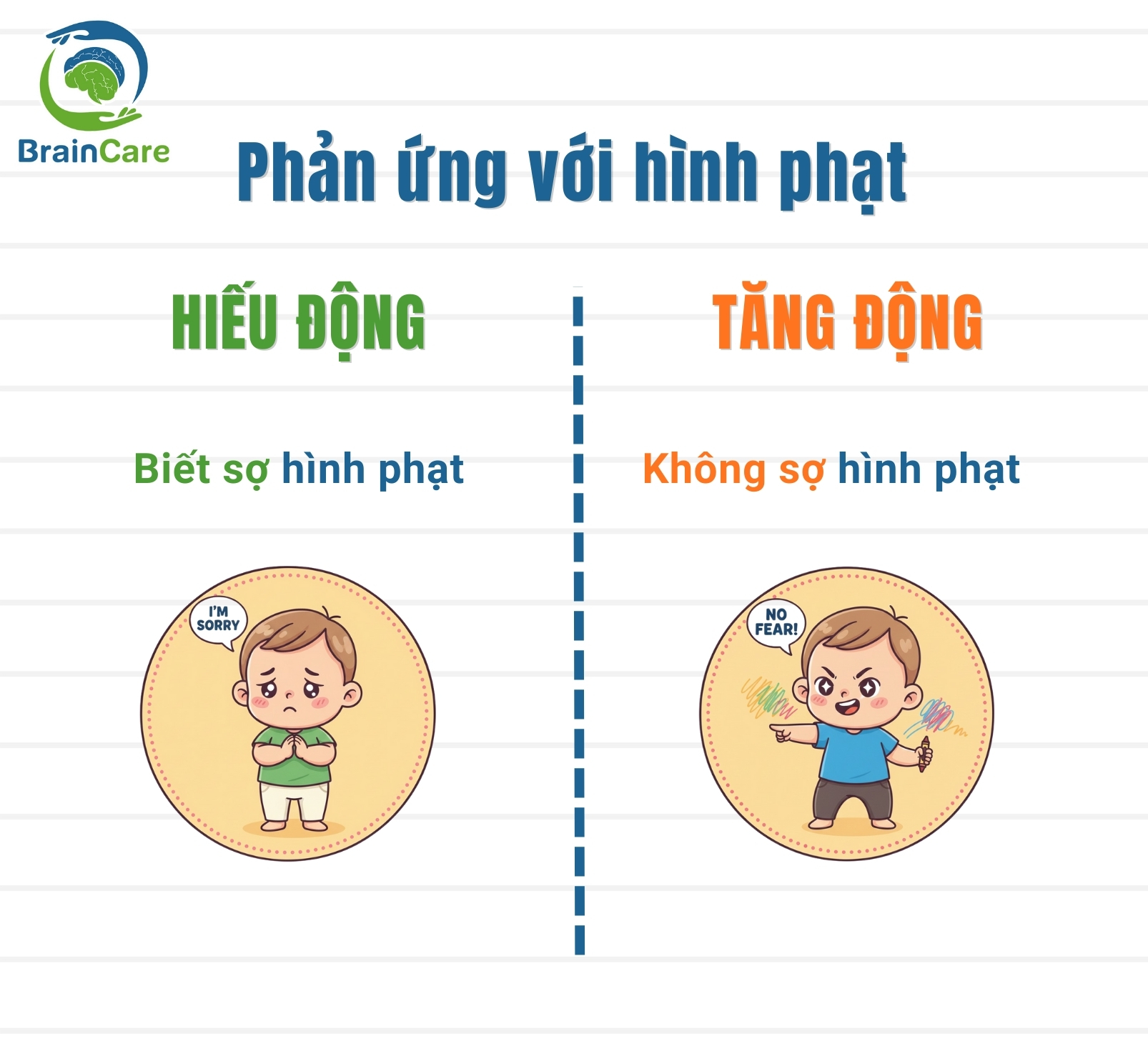 Cha mẹ thân mến, Viện Tâm lý Giáo dục BrainCare nhận thấy rất nhiều phụ huynh khi đưa con đến đánh giá tại Viện thường cảm thán rằng: Thấy con nghịch ngợm, chạy nhảy lung tung, chị chỉ nghĩ con hiếu động bình thường thôi, chủ quan, không ngờ là con lại bị Tăng động giảm chú ý.