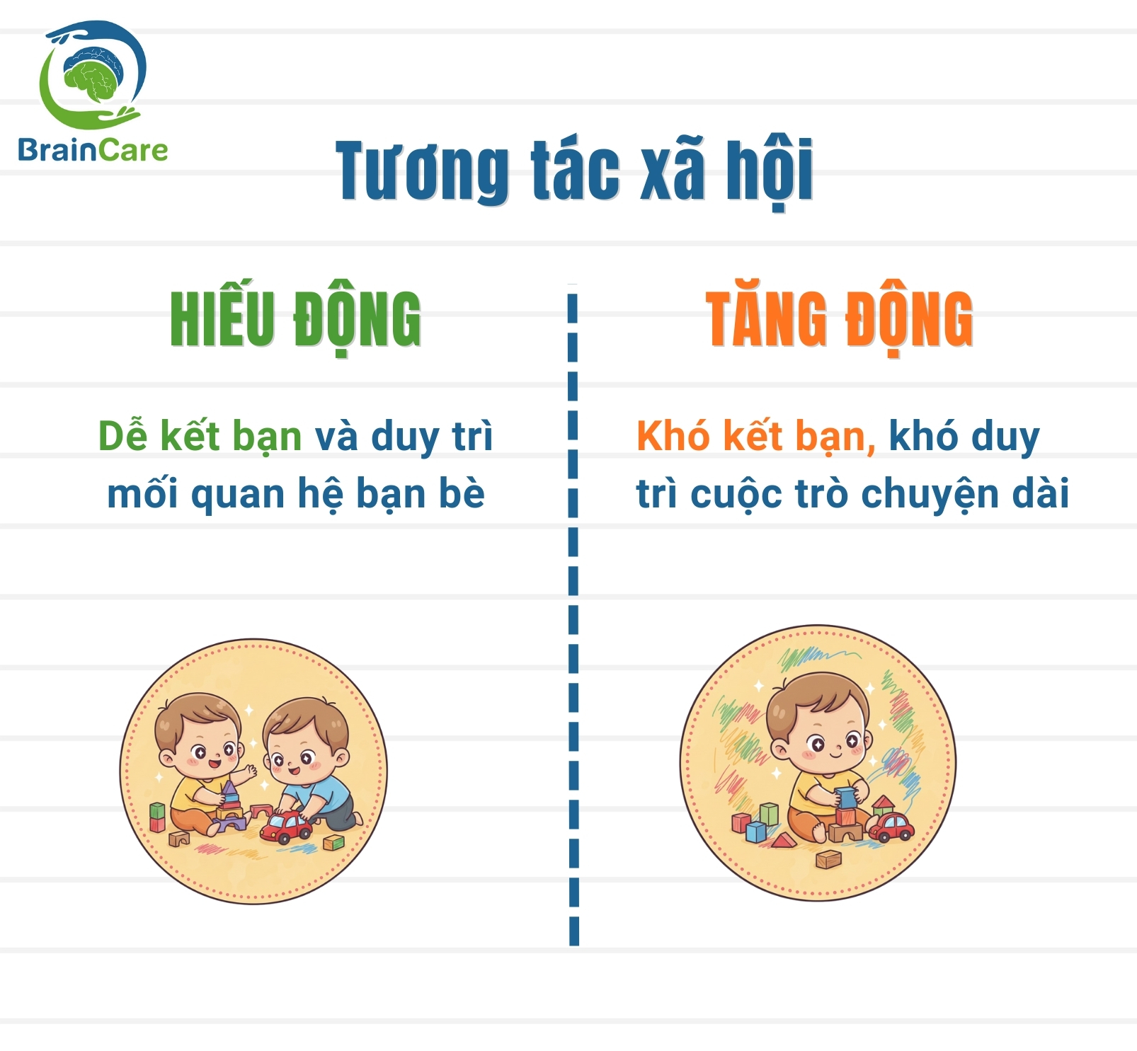 Vì vậy, trong bài viết này, phụ huynh cùng BrainCare tìm hiểu sự khác nhau giữa trẻ hiếu động đơn thuần và trẻ thực sự gặp phải tăng động giảm chú ý nhé!